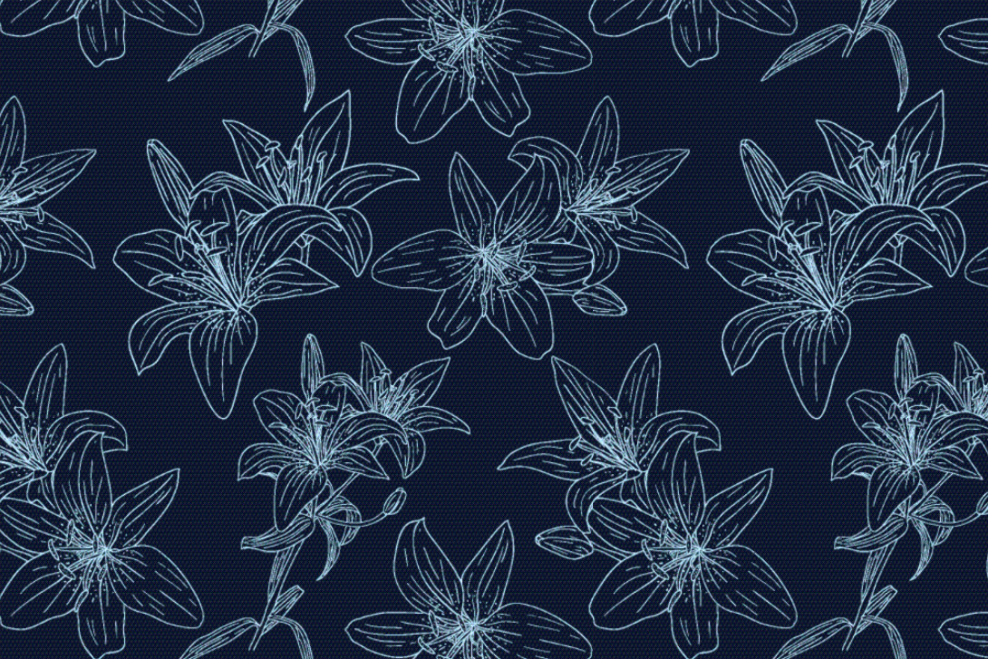 Satin - Lilien-Traum Nachtblau/Hellblau