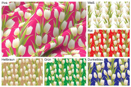 Tulpen wecken so viele schöne Erinnerungen: Ein milder Frühling, Urlaub in den Niederlanden oder einfach üppige Blumensträuße zu besonderen Anlässen. Die wunderschönen Blumen gibt es nun auch auf unserem glänzenden Satin-Stoff.