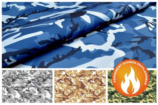Mit Tarnmuster bedruckter, permanent schwer entflammbarer Dekostoff aus Trevira CS