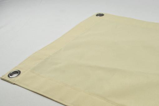 Sie bestellen hier ein fertig genähtes Segeltuch in der Größe 180 x 290 cm, am Rand doppelt umgeschlagen (5 cm breit) und handwerklich sauber vernäht. In den Saum ist ein Verstärkungsband eingearbeitet, das die Stabilität dieses Segeltuchs zusätzlich erhöht.