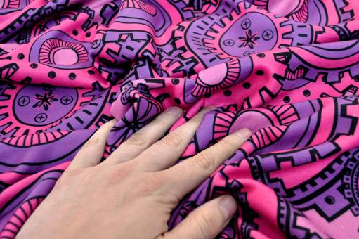Dieser Fleece-Stoff mit coolem Zahnrad-Design fühlt sich wunderbar weich an und hat eine