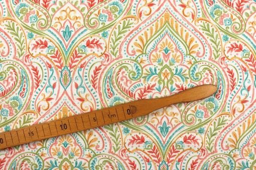 Dieser detailreiche, herrlich bunte Dekostoff besteht zum Großteil aus Baumwolle, hat somit einen herrlich natürlichen Warengriff und einen schönen Fall. Perfekt für Heimtextilien wie Übervorhänge, Kissenbezüge, Überwürfe, Hussen, Tischwäsche und vieles mehr.Dadurch, dass die Ware aus zu 92% recycelten Fasern besteht, können Sie mit einem absolut reinen Umweltgewissen Ihr nächstes DIY-Projekt starten!