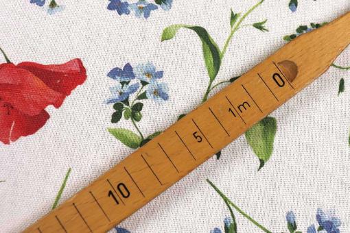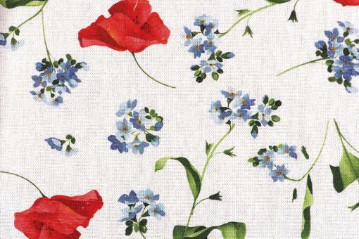 Wie auf der Frühlingswiese - ein überbreiter Dekostoff, der zu 92 % aus recycelten Fasern besteht und mit einem floralen Muster überzeugt!