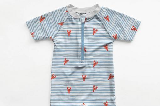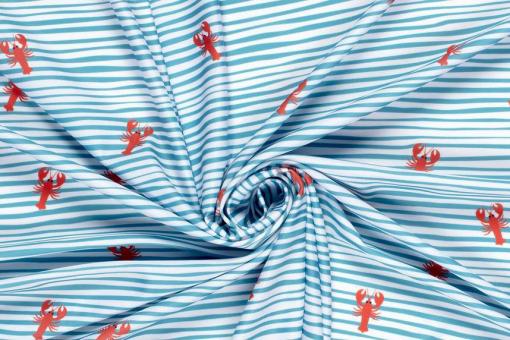 Badeanzugstoff Recycling - Hummer auf Streifen