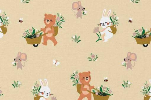 Herrlich weicher, feiner Baumwollstoff mit niedlichen Häschen, Mäuschen und Bärchen