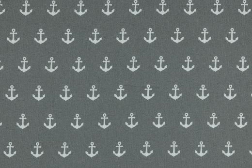 Ideal für alle Fans maritimer Muster - cooler Bauwoll-Popeline mit Ankern. Zaubern Sie aus diesem tollen Stoff hübsche Heimtextilien, nutzen Sie ihn für schöne Patchworkarbeiten oder nähen Sie tolle Oberbekleidung. Lassen Sie ihrer Kreativität freien Lauf! Das Material ist bedingt blickdicht, matt und hat einen sehr natürlichen, weichen Warengriff.