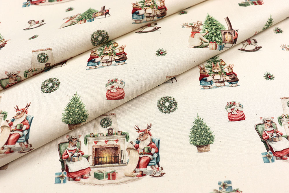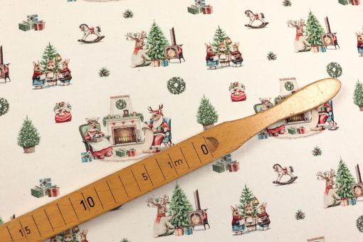 Weihnachtsstoff Baumwolle - Rentier-Familie