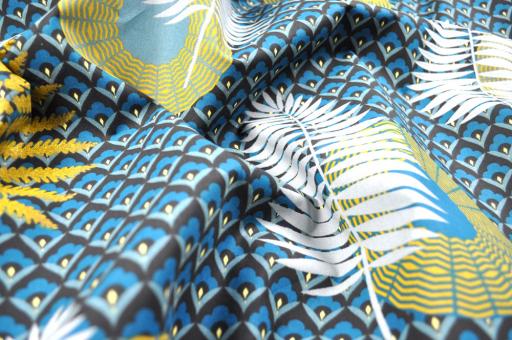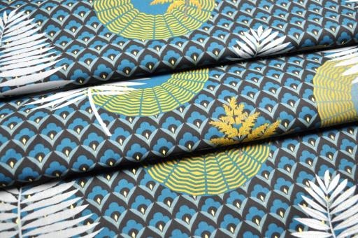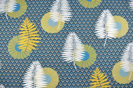 Große exotische Blätter finden Sie auf diesem feinen Baumwollstoff. Toll für Heimtextilien, nicht nur fürs Kinderzimmer. Von der Bettwäsche über Kissen, Tischdecken bis hin zu Vorhängen und vieles andere mehr. Natürlich lässt sich daraus auch leichte Oberbekleidung und Kostüme nähen. Der Stoff, aus reiner Baumwolle, hat einen natürlichen Warengriff und ist angenehm auf der Haut. In der Verarbeitung und Pflege ist dieser Stoff völlig unproblematisch.Natürlich finden Sie dazu passendes Nähzubehör, wie Schrägband, Garn etc. ebenfalls bei uns im Shop.