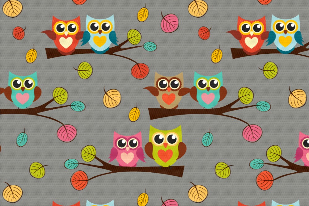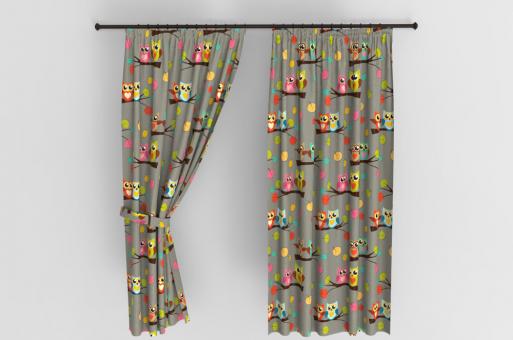 Blackout, perm. schwer entflammbar - Kuschel-Eulen Hellgrau