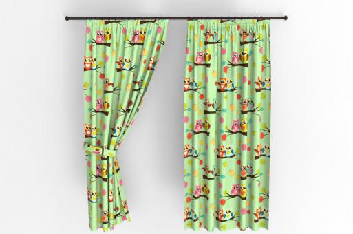 Die kuscheligen Eulen warten darauf, den Schlaf von Kindern zu bewachen. Auf diesem Gardinenstoff gelingt es ihnen sicher wunderbar. Das kindgerechte Motiv lässt auch die Herzen von Erwachsenen höher schlagen.