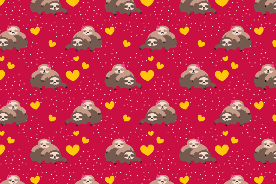 Herzallerliebst ist dieser kuschelige Fleece mit bezauberndem Faultier-Motiv. Innig liegt das Faultier-Pärchen zwischen Herzchen beisammen.