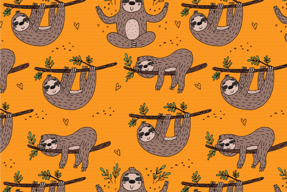 Fleece Stoff - Lazy-Faultier Orange