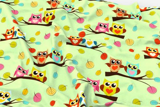 Ein durch und durch herziges Motiv ziert diesen weichen Wohlfühl-Stoff. Wem geht beim Anblick der verliebten Eulen-Paare nicht das Herz auf? Da möchte man doch direkt mitkuscheln!