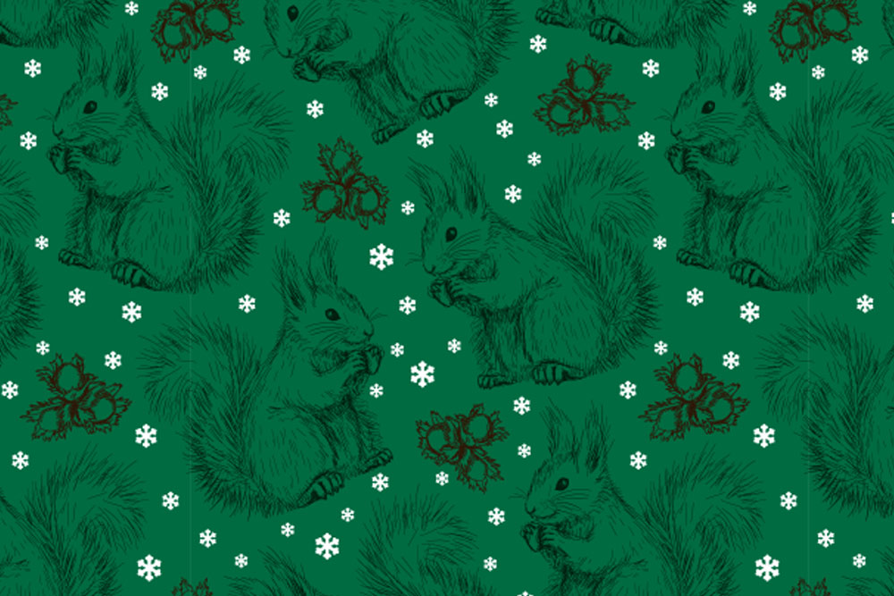 Wärme-Fleece - Eichhörnchen im Winter Tannengrün