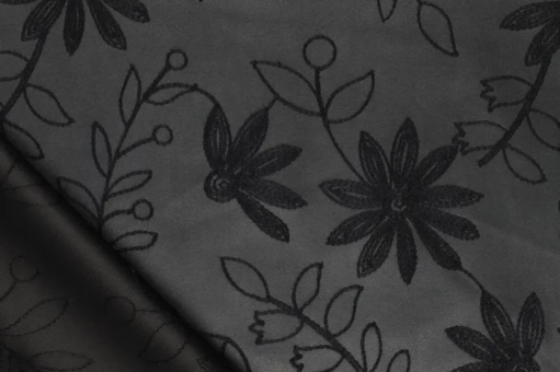 Das kunstvoll bestickte Kunstleder zeigt ein zartes Blumenmuster in Ton-in-Ton-Optik, das jedem Projekt eine elegante, feminine Note verleiht. Die feinen Stickereien kommen auf dem leicht glänzenden Grundmaterial besonders schön zur Geltung und sorgen für eine edle Haptik.Gefertigt aus hochwertigem Kunstleder überzeugt der Stoff durch seine robuste, pflegeleichte Oberfläche und lässt sich gut verarbeiten.