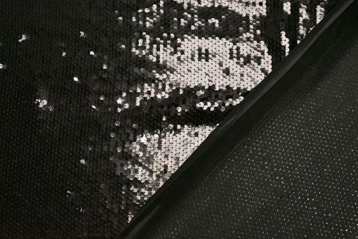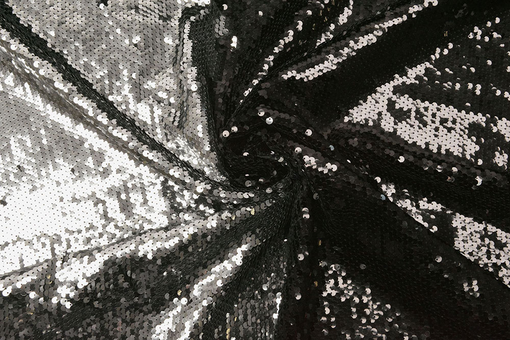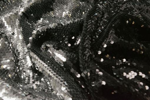 Wende-Pailletten-Stoff - Schwarz/Silber