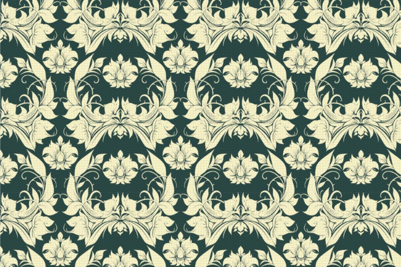 Pannesamt - Barock - Ornament Dunkelgrün/Creme