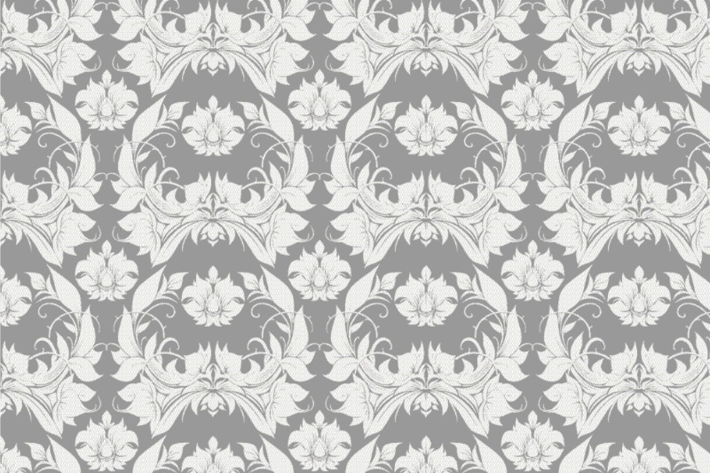 Pannesamt - Barock - Ornament Grau/Weiß