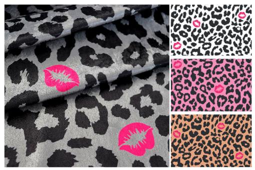 Wow - kesser Pannesamt mit Leo-Muster und Knutschlippen für sexy Kostüm- und Dekoideen