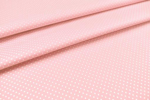 Weiß getupfter Baumwollstoff in hellem Rosa für schöne Heimtextilien, Kleidungszwecke und Patchworkarbeiten