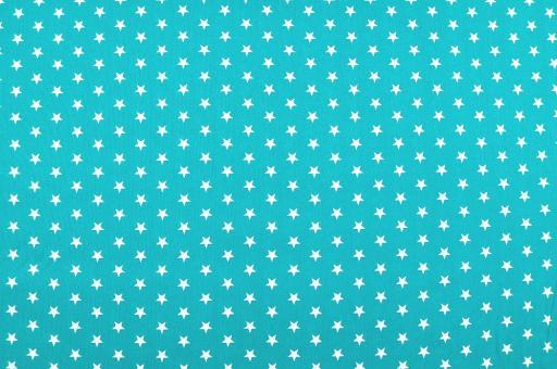 Mit Sternen bedruckter Patchworkstoff aus reiner Baumwolle in Petrol/Weiß