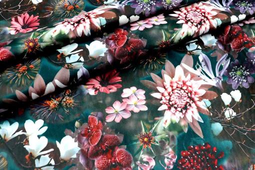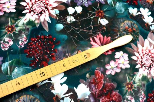 Technisch wie optisch haben Sie es hier mit absoluter Premiumware zu tun. Das opulente Blumenmotiv beeindruckt und bringt jeden Betrachter zum Staunen. Die Oberfläche ähnelt einer Pfirsichhaut - man will den Stoff gar nicht mehr loslassen! Dazu kommen die unzähligen technischen Eigenschaften, wodurch der Stoff zum absoluten Alleskönner wird. Überzeugen Sie sich selbst:Besondere Eigenschaften: