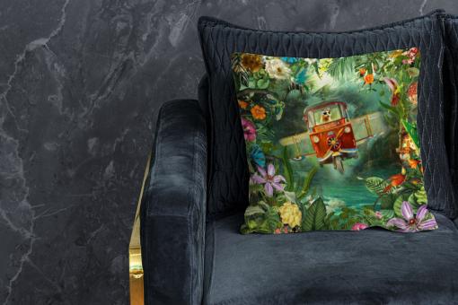 Freunde des Außergewöhnlichen aufgepasst - dies ist ein digital bedruckter Samt-Stoff!Das Motiv ist ein wilder Trip ins Ungewisse. Jeder Zentimeter offenbart eine neue Überraschung! Die Rückseite des Stoffes ist weiß.