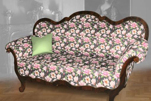 Einseitig bedruckter Samt-Polsterstoff mit edler Optik und üppigem Magnolien-Motiv
