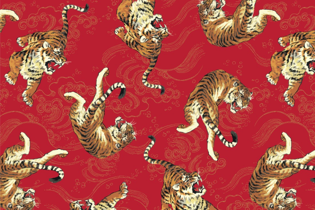 Kaufen Sie bei uns Seidenimitat-Optik zum kleinen Preis! Dieser Satin ist hochglänzend und bringt die auffälligen Farben schön zum Leuchten. Somit kommt das asiatische Tiger-Motiv richtig gut zur Geltung. Das Material ist in Atlasbindung gewoben und auf der Rückseite weiß. Hervorragend