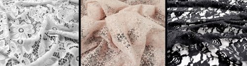 Blumenmuster zeichnen diese Spitzenstoffe aus.