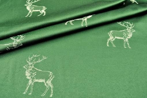 Dekostoff Jacquard - zweiseitig - Hirschrudel - Grün