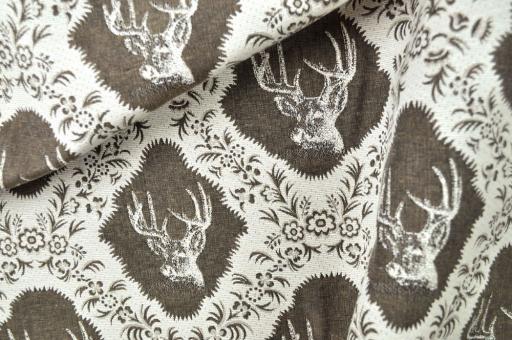 Jacquard Stoff - Hirschkopf - Beige/Graubraun