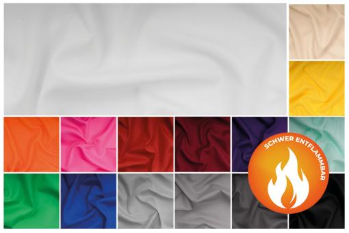 Dieser hochwertig veredelte Stoff überzeugt durch seine fein strukturierte Oberfläche und einen edlen, seidenmatten Glanz. Er ist nicht nur optisch ein Highlight, sondern auch äußerst vielseitig einsetzbar – ideal für unterschiedlichste Projekte im Dekorations- und Veranstaltungsbereich.Die angenehm weiche Haptik und der fließende Fall machen ihn besonders angenehm in der Verarbeitung. Der Stoff ist schwer entflammbar nach DIN 4102 B1 und damit perfekt geeignet für öffentliche Räume, Messen oder Bühnenbilder.