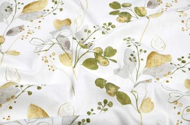 Ramie-Baumwoll-Gemisch mit zartem Eukalyptus-Motiv in Grün