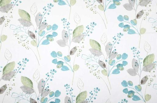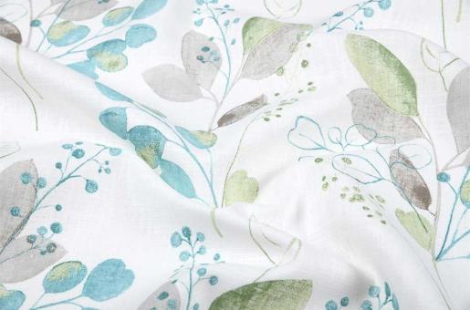 Ramie-Baumwoll-Gemisch mit zartem Eukalyptus-Motiv in Blau