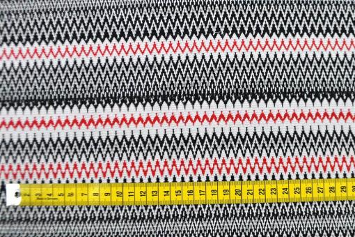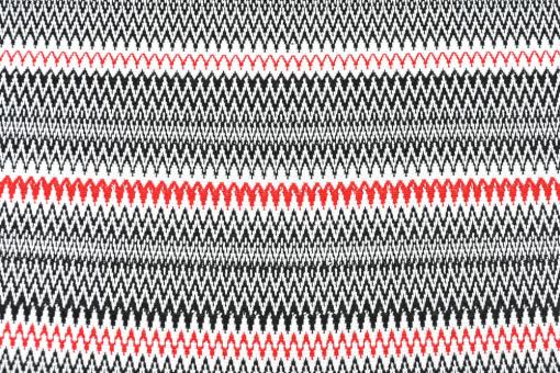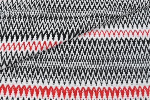 Hübscher Jersey mit weichem Griff und einem Muster im Ethno-Stil. Das Mischgewebe ist pflegeleicht und der Anteil an Elasthan sorgt für die nötige Bequemlichkeit. Schlagen Sie jetzt zu und holen Sie sich diesen Jerseystoff zum TOP-Preis!Es handelt sich bei diesem tollen Stoff um eine hochwertige Meterware aus der Damenkonfektion der beliebten Marke „Frank Walder". Überbestände der erstklassigen Meterware konnten hier zu einem tollen Preis ergattert werden. Diesen Preisvorteil geben wir gerne an Sie weiter.