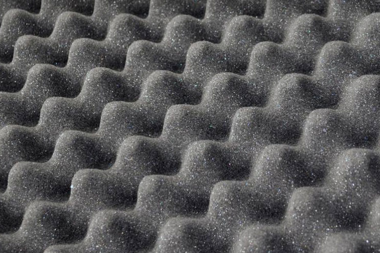 Dies ist ein technisch sehr ausgefeiltes Schaumstoff-Material, das speziell für die Akustikverbesserung und Schalldämmung entwickelt wurde. Das hohe Raumgewicht und die hohe Noppenstruktur sorgen dafür, dass Geräusche sozusagen "geschluckt" werden. Darüber hinaus ist das Material flammhemmend nach Brandschutznorm DIN EN 10204 und empfiehlt sich daher für den öffentlichen Bereich.