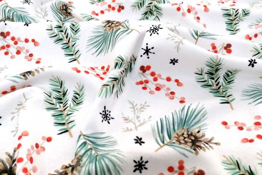 Ein wunderschönes winterliches Motiv ziert diese hochwertige Fleece-Ware. Es ist wunderbar weich und hat eine sogenannte Antipilling-Ausrüstung. Das heißt, es bilden sich keine kleinen Knötchen. Der einseitig bedruckte Stoff ist absolut blickdicht, fällt weich und traumhaft im Griff - so richtig zum Wohlfühlen. Die Einsatzzwecke sind sehr vielseitig: Von Kleidung, über warme Kissen und Decken und auch als wärmendes Innenfutter für die kalte Jahreszeit bestens geeignet.Tipp: Nach der ersten Wäsche wird die Meterware flauschiger. Natürlich finden Sie das dazu passende Nähzubehör ebenfalls bei uns im Shop.