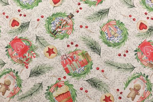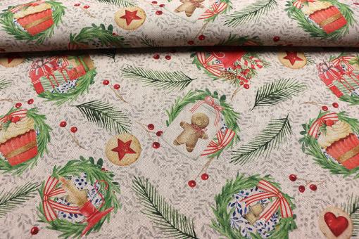 Festliche Nostalgie und Feiertagsstimmung garantiert! Dieser überbreite Dekostoff in Leinenoptik sorgt für ein tolles Ambiente