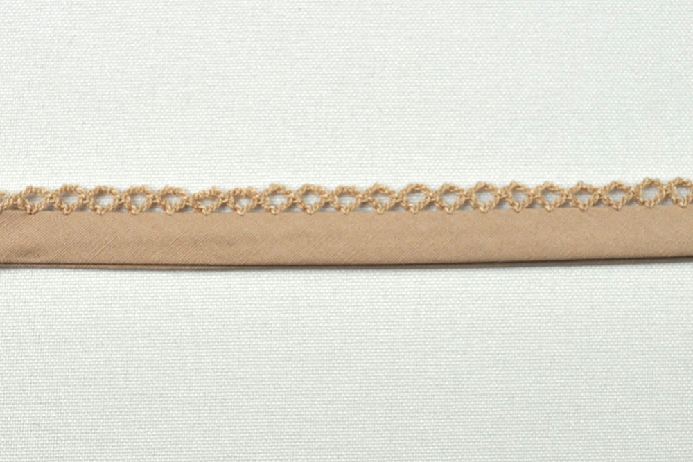 Popeline-Schrägband mit Häkelspitze - 2/4 cm breit - Uni Beige