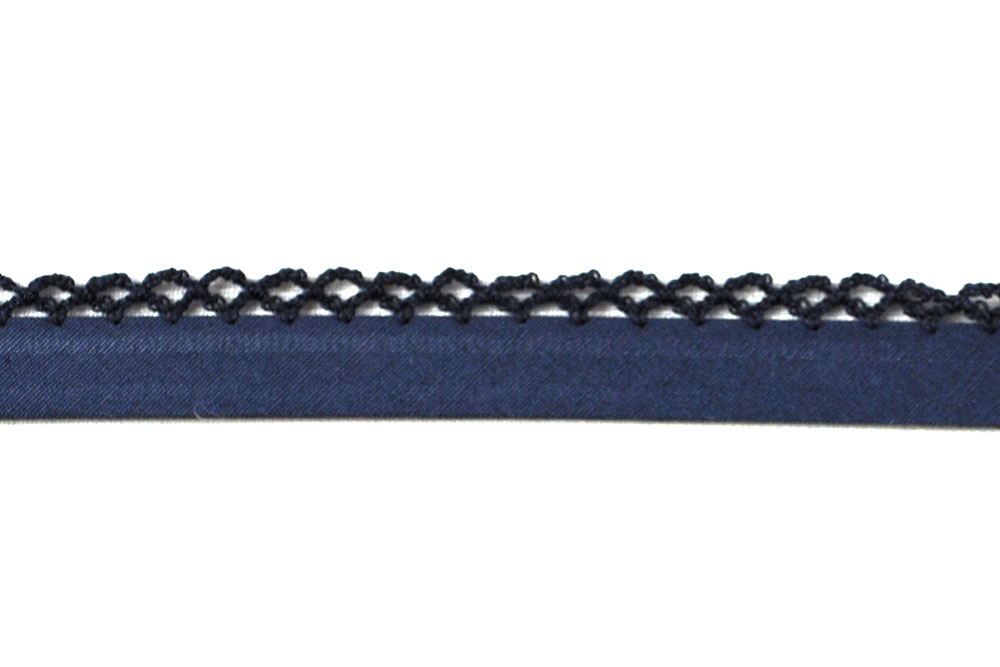 Popeline-Schrägband mit Häkelspitze - 2/4 cm breit - Uni Dunkelblau