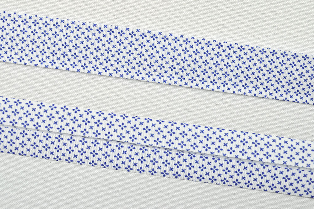 Schrägband - Mini-Blüten - 2/4 cm breit - Meterware Weiß/Blau