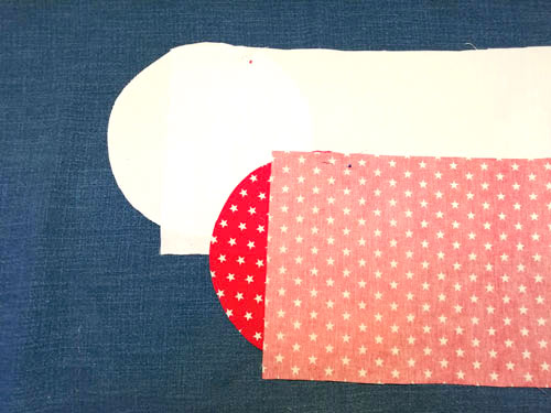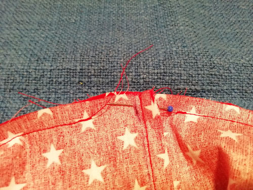 Beim Zusammennähen darauf achten, dass keine Falten in das obere Stoffstück (Rechteck) genäht werden.