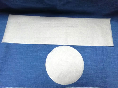 Jetzt wird das Rechteck an den Kreis genäht. Am Anfang und am Ende einer Naht wird kurz vor und zurück genäht, damit die Naht, wenn sie fertig ist, nicht aufgeht.