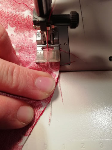 Als Nächstes kann das Teil aus Innenstoff genäht werden. Dazu einfach farblich passendes Garn in die Maschine einfädeln und die vorigen Schritte wiederholen.