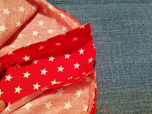 Am Anfang und am Ende werden ca. 3 cm des Rechtecks nicht auf den Kreis genäht, dies wird erst später genäht.