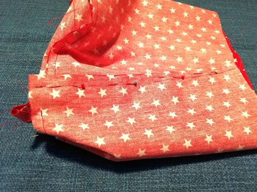 Jetzt kann die kleine offene Stelle gesteckt und anschließend zugenäht werden.