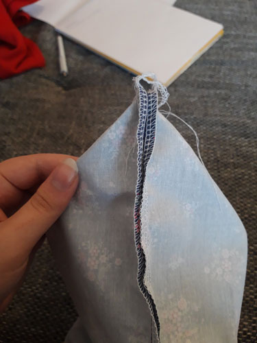 Durch die Öffnung in der unteren Naht wenden. Dann die Öffnung abstecken und knappkantig zunähen.