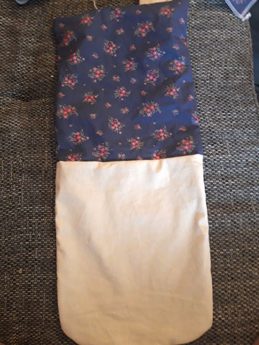 Näht die Baumwollteile zu einem Stoffbeutel zusammen und lasst ihn auf einer Seite offen für den Tunnelzug. Hier ca. 4 cm.