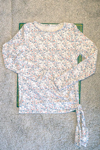 Dieser Schnitt ist nicht nur lässig, er kann auch mit verschiedenen Ärmellängen genäht werden. Der Clou ist hierbei der seitliche Knoten. Der Schnitt enthält außerdem eine Variante für geknotete kurze Ärmel.